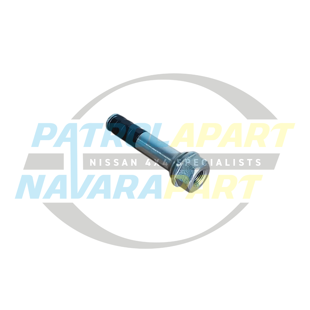This slide pin bolt is fitted to the lower mounting position of the front brake caliper on your vehicle. It is a critical component that allows the brake caliper to slide back and forth freely as the brakes are applied and released. This movement is essential for even brake pad pressure and wear. This bolt may need replacement if it has become seized due to corrosion, bent, or if the threads are damaged during a brake service.