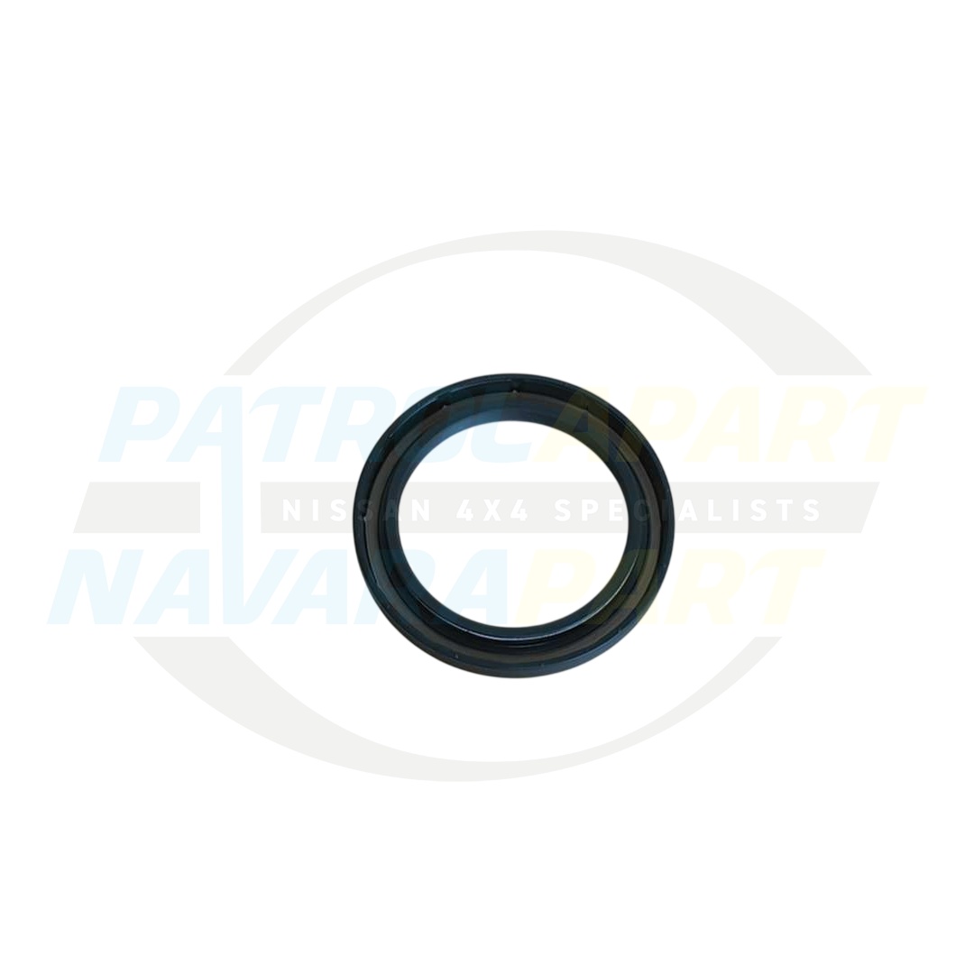 This is the transfer case input seal, positioned where the transfer case meets the transmission on your Nissan Y62 Patrol. This seal prevents oil leaks from the transfer case. Over time, the original seal can degrade due to heat, age, and constant use, leading to leaks. Replacing the seal prevents potential damage from low oil levels.